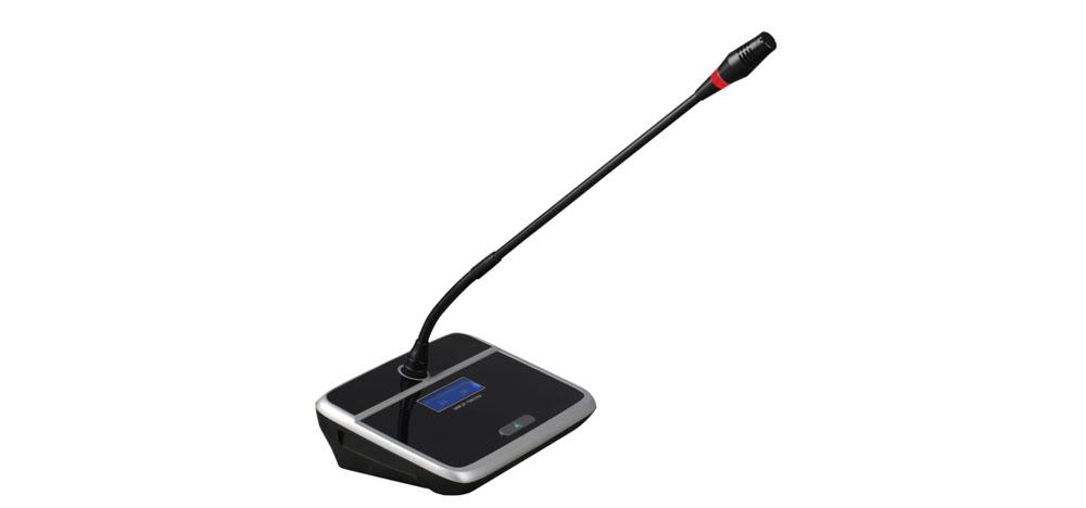 | 主席单元 | CM810C | 工作电压 DC24V(由主机供给) 输入、输出 8P插座x1+RJ45x2 输入 心形指向性驻极体 灵敏度 -46 dBV/Pa 频率响应 20Hz~20KHz 输入阻抗 2 kΩ 方向性0°/180° > 20 dB (1 kHz) 等效噪声 20 dBA (SPL) 话筒最大声压级 125 dB (THD<3%) 信噪比 >80dB 通道串音 >80dB 总谐波失真 <0.05% 内置扬声器 8Ω 2W(选配) 耳机负载 >10 Ω 耳机音量 10 mW 耳机接口 3.5mm耳机插座×2(选配) 外部尺寸(不含话筒杆) 重量 1.0kg 颜色 黑 安装方式 桌面式 | 锌合金材料外观专利底座,更富金属质感。 紧凑型设计,简约时尚,鹅颈话筒带红色发言指示光环 单元为无源设备,由系统主机供电。输入电压为24V,属安全范围 话筒之间采用8芯手拉手线链接,线材采用全线铝箔+水线屏蔽,大大降低强电磁波对线材的干扰 超指向电容话筒,实现高品质声音拾取 采用防干扰电路设计,可防止手机等电子产品的干扰。 支持5个主席单元,连接时不受位置限制可任意安装,具有全权控制会议秩序的优先功能,可控制会议气氛。 "手拉手"电缆串联连接模式,便于安装和维护 |
