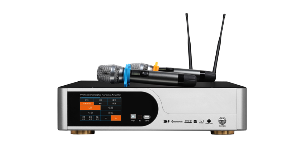 四合一音视频智能一体机(功放+无线一拖二话筒+效果器+点歌系统)